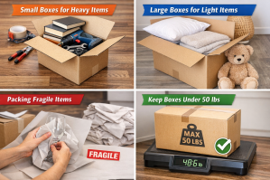 Avoid overpacking large boxes with heavy items — this can cause lifting injuries and crushing damage.