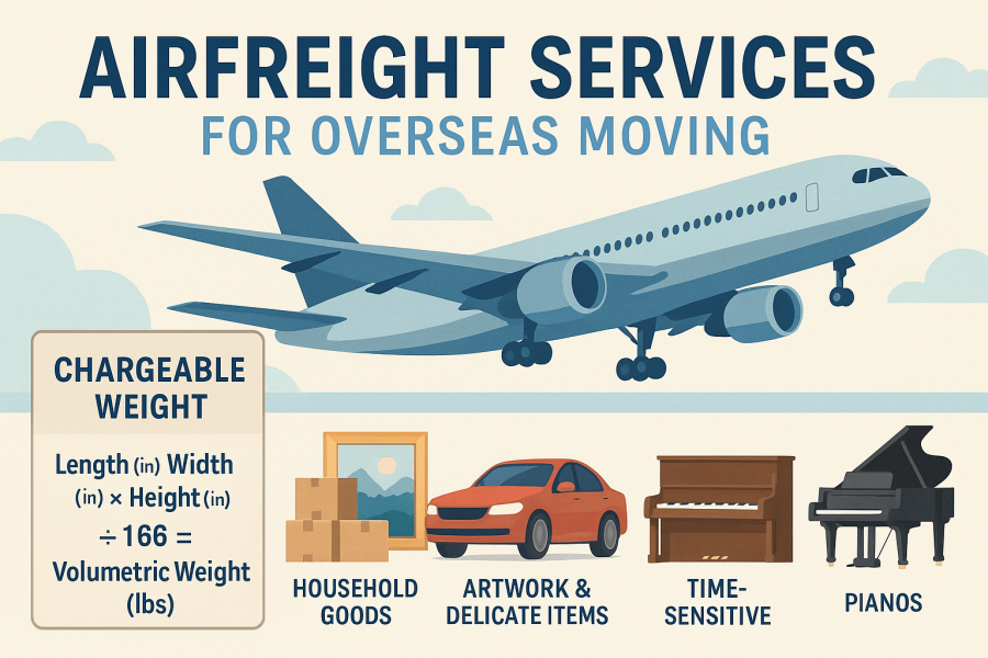 When you need your belongings to arrive overseas quickly, securely, and with the utmost care, airfreight is the fastest solution. Whether you are shipping householdgoods, delicate artwork, valuable musical instruments, or even a classic car, our airfreight services are designed to meet tight deadlines without compromising safety.